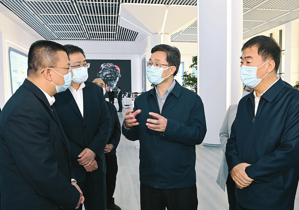 三月三十日,省委书记蓝佛安在晋城经开区听取了经开区推进产业链与创新链融合发展情况汇报。(史晓波摄)